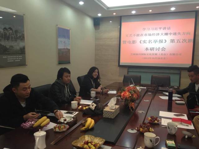 十月二十八日電影《實(shí)名舉報(bào)》主創(chuàng)團(tuán)隊(duì)人員就總書記的重要講話進(jìn)行了學(xué)習(xí)與討論。與會(huì)氣氛熱烈,制片人徐知音、導(dǎo)演武洪武、韓志和編劇孟洪峰老師都做了發(fā)言。一致認(rèn)為,文藝不應(yīng)該充滿銅臭味,應(yīng)該腳踏實(shí)地,認(rèn)真的為人民服務(wù),反映出人民的心聲,唱出時(shí)代的主旋律。