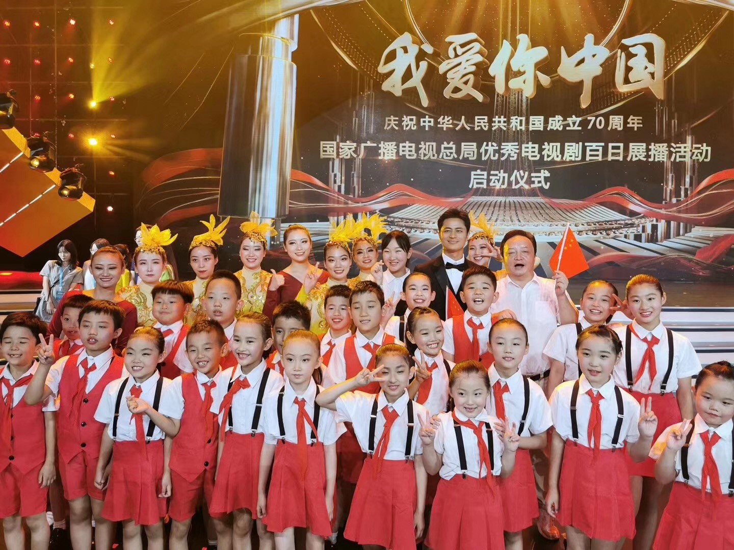 為隆重慶祝新中國(guó)成立70周年,“我愛(ài)你中國(guó)——國(guó)家廣播電視總局優(yōu)秀電視劇百日展播活動(dòng)”啟動(dòng)儀式于8月25日晚8點(diǎn)在青島東方影都大劇院舉行,我司出品承制的電視劇《可愛(ài)的中國(guó)》、劇組主創(chuàng)人員以及藝海小演員們登臺(tái)亮相。